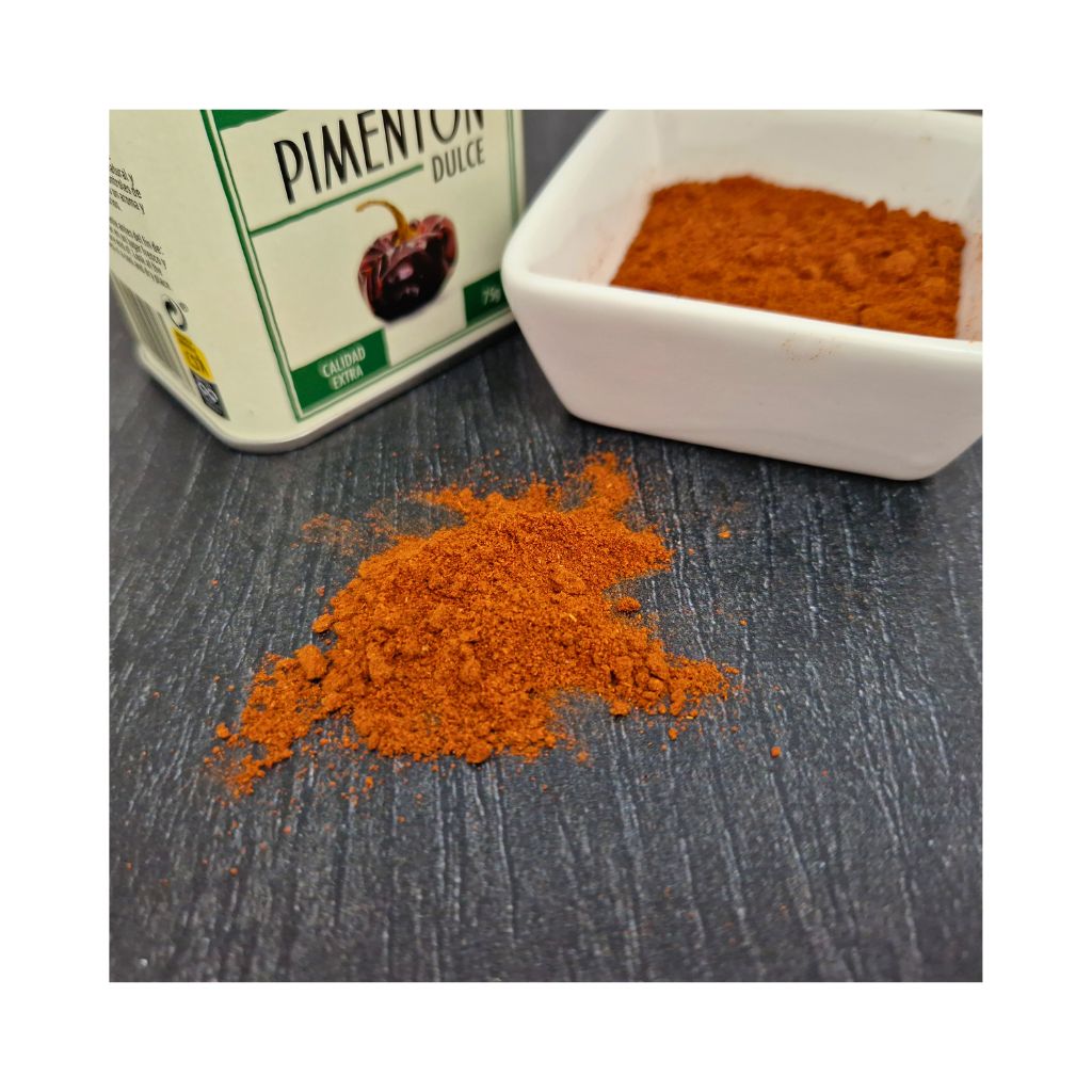 Dit zoete paprikapoeder (pimentón dulce) is de smaakmaker van de traditionele Valenciaanse paella. Het wordt gemaakt van zorgvuldig geselecteerde paprika’s, natuurlijk gedroogd en fijn gemalen. De smaak is zacht, aromatisch en subtiel rokerig – precies wat een echte paella nodig heeft.
